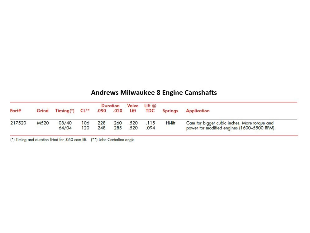 M520 – Great cam for bigger cubic inches. More torque and power for modified engines (1600–5500 RPM).